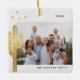 Bohemian desert faux gold foil cactus and stars, holiday photo ornament.