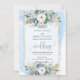 Ideal for formal, modern, or rustic-chic weddings, this dusty blue and gold floral invitation pairs perfectly with matching stationery, RSVP cards, menus, and signage for a cohesive event design.