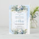 Bohemian Dusty Blue White Gold Peonies Invitation