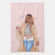 Bohemian Faux Glitter Girl Tan Hair Pink Tea Towel