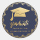 Bohemian Faux Gold Foil Graduate Hat | Blue Classic Round Sticker