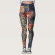 Amazing pair of leggings with a bohemian flare. They are decorated with flowers and feathers in a rich green, orange and gold.