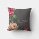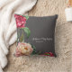 Beautiful cushion with a dark gray background and a repeated botanical plum and pink painted floral pattern. Customized with your names and/or date, it would make a perfect gift for an anniversary or wedding. For more cushions see the Knots & Kisses Shop.