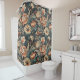Beautiful Bohemian style pattern with large flowers on a dark background, Colours include peach, teal, white and green.