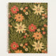 Retro-style floral pattern with bold, stylised flowers against a dark olive green background. The pattern feels lush and abundant, with the flowers appearing to float among the dense foliage. The contrast between the warm-toned flowers and the dark green background creates a striking visual effect.