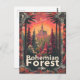 A serene and nostalgic depiction of the Bohemian Forest (Šumava) in Central Europe, spanning the Czech Republic, Germany, and Austria. The design captures the region's dense woodlands, tranquil lakes, and rolling hills. Rendered in a vintage style, the artwork evokes the enchanting and peaceful atmosphere of the Bohemian Forest, inviting viewers to explore its pristine nature, scenic trails, and rich biodiversity.