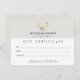 Coordinates with the Bohemian Gold Antlers with Flowers II brand materials by 1201AM. An illustration of deer antlers in faux metallic gold is combined with a bouquet of flowers to provide a bohemian aesthetic on this customisable gift certificate. A great aesthetic for boutiques, jewellery designers, artists, photographers and more.