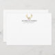 Coordinates with the Bohemian Gold Antlers with Flowers Business Card Template by 1201AM. An illustration of deer antlers in faux metallic gold is combined with a bouquet of flowers to provide a bohemian aesthetic on this clean, white flat notecard design. Use these notecards for customer thank you cards, personal greetings, announcements and more.