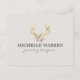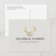 Coordinates with the Bohemian Gold Antlers with Flowers II Business Card Template by 1201AM. An illustration of deer antlers in faux metallic gold is combined with a bouquet of flowers to provide a bohemian aesthetic on this personalised postcard template. Great to use for sending thank you's to customers, for announcements, personal correspondence, and more.