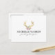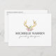 Coordinates with the Bohemian Gold Antlers with Flowers Business Card Template by 1201AM. An illustration of deer antlers in faux metallic gold is combined with a bouquet of flowers to provide a bohemian aesthetic on this personalised postcard template. Great to use for sending thank you's to customers, for announcements, personal correspondence, and more.