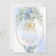 Bohemian Light Blue Floral Gold 90th Birthday Invitation