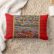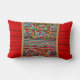 Bohemian style lumbar cushion in red with multi coloured design