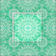 Elegant white lace abstract hand drawn bohemian symmetrical mandala pattern on dark green background.