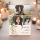Class of 2024! Announce your graduation with our Bohemian meadow pastel wild flowers spring summer 3 photos graduations party with pretty wild country flowers in boho retro orange,red, peach, green leaves, fern and more, with a brushed script typography on an elegant editable soft beige ivory background.