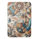 Nature-inspired, free-spirited, illustrative oil painting in bohemian style features flowers and a mix of patterns and textures on a cream, mustard yellow, teal, and magenta background, perfect for any celebration and decor gifts.