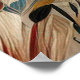 Nature-inspired, free-spirited illustrative oil painting in bohemian style features a mix of patterns and textures on a cream, mustard yellow, teal, and magenta flowers on a fabric background, perfect for any celebration and decor gifts.
