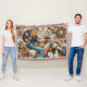 Nature-inspired, free-spirited, illustrative oil painting in bohemian style features flowers and a mix of patterns and textures on a cream, mustard yellow, teal, and magenta background, perfect for any celebration and decor gifts.