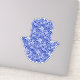 Colourful blue and white Hamsa Hand. The hand is printed with a bohemian style delicate pattern.
