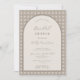 A bridal shower design featuring one of the season's trendiest prints - an open rattan weave pattern and in an arch shape format. On the back there is a simple and modern couples monogram.