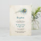Bohemian wedding reception card with peacock feather and teal wording. Perfect for elegant boho weddings and other vintage style events.