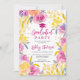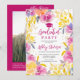 Bohemian purple gold glitter floral photo graduation party invitation with original hand painted watercolor floral illustration featuring purple, pink, yellow flowers and leaves with elegant chic glam faux gold glitter confetti. Add your photo at the back.