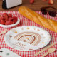 Make your little girl's birthday party even more perfect with these beautiful personalized cardboard plates with her first name and a pretty bohemian rainbow!