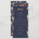 This beautifully rustic, Bohemian, menu is decorated with a watercolor floral design that incorporates dark blue, rust, ecru, and terracotta hues. Easily edit the bride and groom's names, wedding date, and menu items. If the font size or margins need adjusting, please enter the design tool to adjust the text bounding box or font size to better suit your layout. If you require assistance we are happy to help. Feel free to message us using Zazzle Chat. Bohemian Rust Blue French Country Wedding Menu.