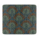 This glass cutting board features a scallops fan pattern in earthy olive green, rust on navy blue for a bohemian look.