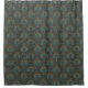 This shower curtain features a scallops fan pattern in earthy olive green, rust on navy blue for a bohemian look.