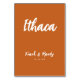For the modern bohemian and creative couple who wants to assign their favourite travelling locations to their wedding reception tables instead of just a number. Whether it is your favourite street name, city, state country travelling location; this simple but versatile design is for you! Elegant boho terracotta background and white typography are also customisable. Table card also features newlyweds names and wedding date.
