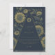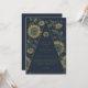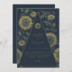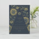 This unique navy blue wedding invitation features golden yellow etched sunflowers artistically arranged around a central triangle frame, blending rustic charm with modern geometry. The bold layout highlights your names and details inside the triangle, while the sunflower illustrations offer a warm, botanical touch. All elements are printed in colour — no foil or metallic effects. Ideal for garden, country, or contemporary weddings.