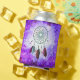 Pretty watercolor nebula background with a teal and purple dream catcher and feathers plus your name in white script along the sides. Feel the boho chic vibes this summer.