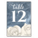 Bohemian White Rose Dusty Blue and Silver Wedding Table Number