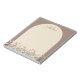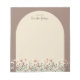 Chic bohemian arch notepad with wildflower floral illustration border with customisable text and name in mocha brown.