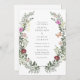 Wedding invitation featuring a beautiful wreath of greenery, garden wildflowers and butterflies with a vintage feel. Customise with your information.