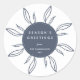 Bohemian Chic rustic leafy line-art wreath, holiday stickers in rustic blue.
