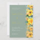 Introducing our stunning green wedding invitation with a touch of sunny yellow! This modern invitation features a delicate line of yellow flowers and greenery, elegantly framing the right side of the card. The simple white font used throughout the invitation contrasts beautifully with the intricate floral details.