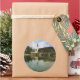 Bohinj lake with church in Slovenia round sticker
