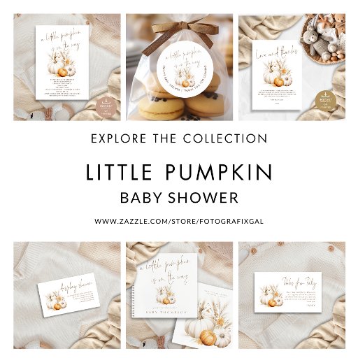 Boho A Little Pumpkin Grasses Baby Shower. Available digitally and printed. Bohemian vibes for your gender neutral baby shower, with a set modern script for A Little pumpkin is on the Way, and easily personalise the rest of the text as required and change the text and background colours if you wish via the edit further option. With an illustration of autumn orange and white pumpkns and pampas grasses.