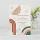 Make your wedding truly unforgettable with this retro-inspired boho wedding invitation. Featuring earthy tones of terracotta, sage green, and cream, the design showcases modern geometric patterns, including semi-circles, arches, and abstract accents that exude vintage charm. The minimalist layout allows your wedding details to stand out while perfectly complementing the overall aesthetic. Ideal for bohemian, rustic, or earthy-themed weddings, this invitation is a stylish way to invite your guests to your special day. Fully customisable to match your unique celebration!