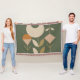 A boho inspired design of simples shapes in rustic colours of green, tan, beige, brown, and orange.