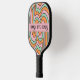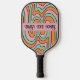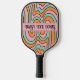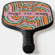 Personalised Boho 70's style abstract pink orange green wavy lines pickle ball paddle, with retro flourished typography. A 60's and 70's style vibe. Add your name,