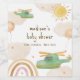 Cute whimsical airplane pilor baby shower theme, design feature green and yellow watercolor vintage helicopter over the the sky decor with boho watercolor neutral cloud, stars, sun, balloon rainbow and the "Adventure Awaits" text, perfect for baby boy and girl baby shower. you can customize your own text and color.