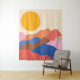 Boho Aesthetic Abstract Landscape Mountains in Blue and Red Tapestry