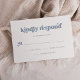 This simple and boho rsvp response card features dusty blue, retro typography on a white background. It coordinates perfectly with our boho retro bridal shower, couple shower, bat mitzvah or bar mitzvah invitations.