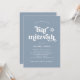 This simple and boho Bar Mitzvah invitation features white, retro typography on a dusty blue background with a matching Star of David.