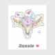 A vinyl decal with a boho chic animal skull with a floral bouquet upon its head and little butterflies fluttering about.
