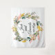 custom backdrop for photo booth, fall anniversary party back drop, personalised wedding prop ceremony decor, elegant head couple table photobooth, stylish rustic tapestries banner names, reception tapestry welcome sign botanical, engagement rehearsal dinner for bride, and groom shower autumn summer, spring winter botanical greenery wreath, event entrance foliage for them
