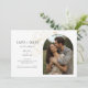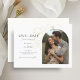 These modern minimalist wedding save the date flat cards feature a boho arch couple photo, delicate imitation gold floral elements and a contemporarty set of fonts in jet black. Flower detail is repeated at the back against a soft ivory background. This design is contemporary and chic. Perfect for the stylish and elegant couple.