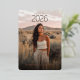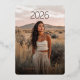 This stunning graduation design features a modern arched layout framing a warm, sunlit portrait set against a serene desert landscape. Soft golden tones, natural textures, and a glowing sky create a calm, earthy aesthetic that feels both timeless and on-trend. The bold “2026” at the top adds a striking focal point, while the graduate’s name and school are elegantly displayed below in clean, minimal typography. The combination of organic scenery and refined design creates a beautiful balance of modern style and natural charm, perfect for celebrating a graduation milestone in a unique and memorable way.